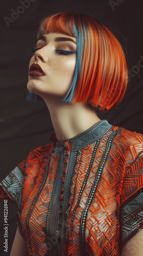 Striking Portrait of Elegant Woman with Vibrant Red Hair in Dramatic Lighting