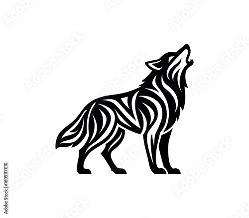 Striking Silhouette of a Howling Wolf with Tribal Pattern, Decorative Animal Icon