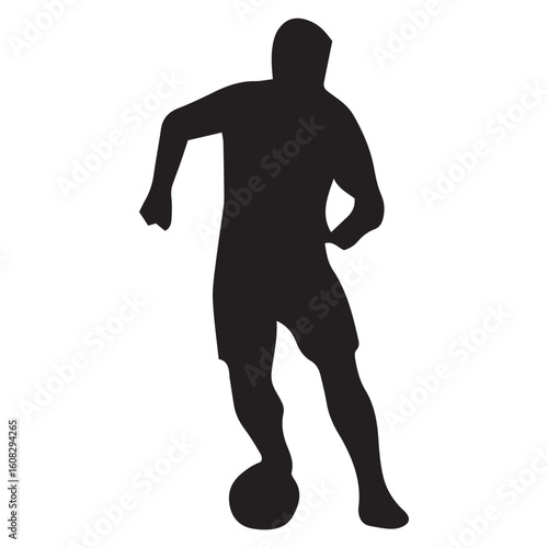 Striking Soccer Player Silhouette Kicking Ball High-Resolution Graphic Design