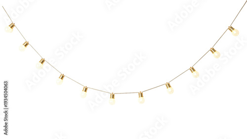 String of warm white fairy lights glowing softly, isolated on a transparent background for festive decoration