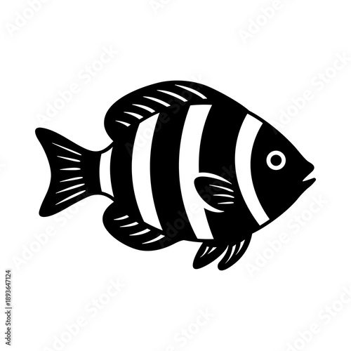 Striped Fish Black Silhouette Illustration for Marine Life Design, Aquatic Wildlife Symbol, Ocean Nature Art and Minimal Graphic Use