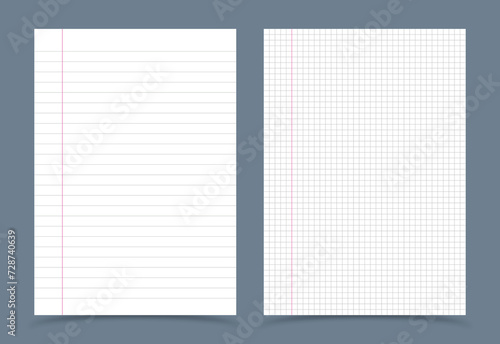striped paper and plaid paper on gray background. notebook pages. educational equipment