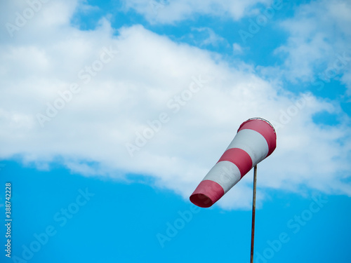 striped windsock at the airport on the background of beautiful clouds