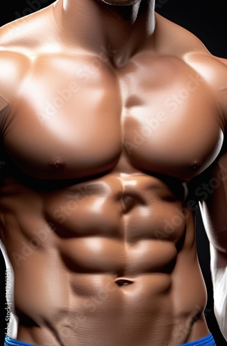 Strong Athletic Man Fitness Model Torso showing six pack abs. isolated on black background. Fitness man pumping up abs muscles in gym. Workout fitness and bodybuilding healthy concept background.