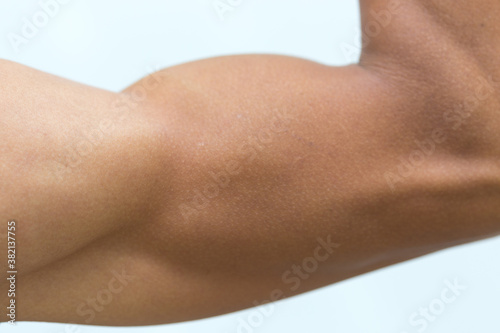 Strong human hand with muscles on white background