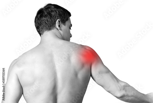Strong man with shoulder pain, back view