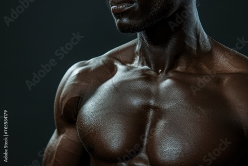 Strong muscular male posing against black background, cropped