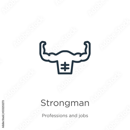Strongman icon. Thin linear strongman outline icon isolated on white background from professions and jobs collection. Line vector sign, symbol for web and mobile