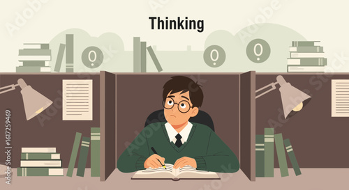 Student Immersed In Study In The Library In A Thoughtful Pensive State