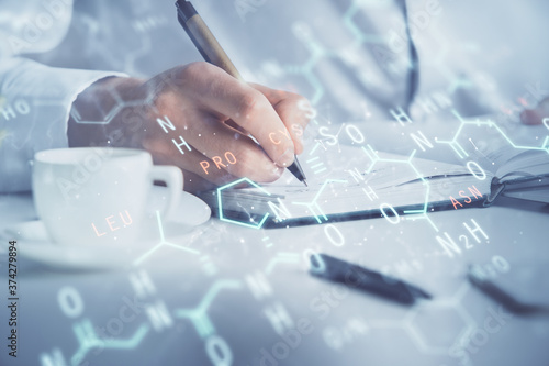 Student or teacher with mathematical and scientific formulas. Concepts of education.
