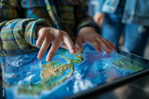 Student using a tablet to explore interactive simulations of climate models, gaining insights into global warming phenomena.