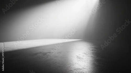 Studio Background with White Wall and Floor – Empty Monochrome Room with Spotlight