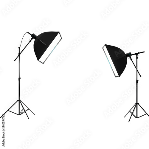 Studio Lighting Setup Two Professional Photography Lamps on Tripods isolated on transparent bacckground