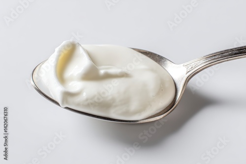 studio photo of plain yogurt in a spoon on a white background, high-resolution