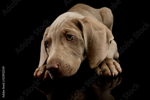 Studio shot of a beautiful Weimaraner puppy