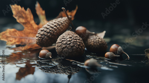 Studio Shot of Acorns with Rich Texture and Earthy Finish