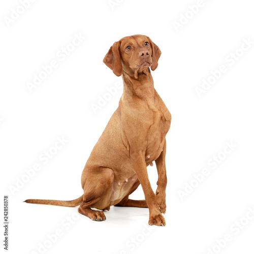 Studio shot of an adorable Hungarian vizsla