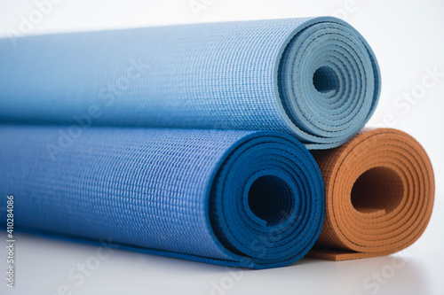 Studio Shot of rolled up exercise mats