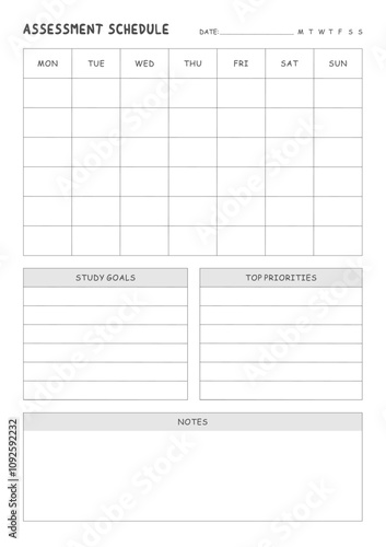 Study Planning Page Planner Sheet Design Template for Organizing Study Sessions, Goals, Timelines, Assignments, Exams, and Progress Tracking for Effective Learning and Academic Success