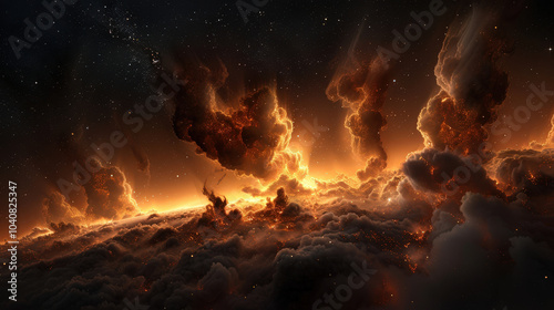 stunning alien storm showcases vibrant clouds and atmospheric phenomena, creating mesmerizing celestial scene filled with fiery colors and dramatic formations
