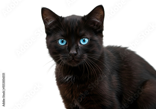 Stunning BlueEyed Black Kitten isolated on transparent baackground