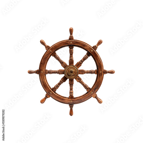 Stunning Brown Wooden ship wheel isolated on a transparent background, in a PNG format