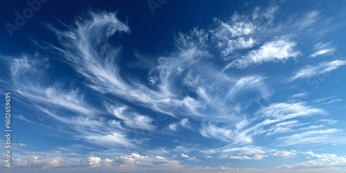 Stunning cirrus clouds forming elegant patterns against a vibrant blue sky, creating a breathtaking natural spectacle
