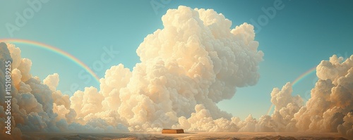 Stunning clouds tower against a vibrant sky with rainbow arcs.