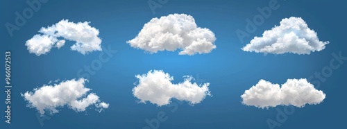 Stunning collection of realistic white clouds. Design elements of natural cumulus clouds on a clear transparent background.