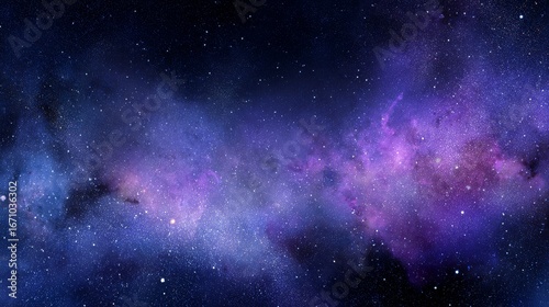 Stunning cosmic nebula in outer space with colorful glowing gas clouds in purple pink and blue, countless sparkling stars and dreamy mysterious galaxy atmosphere