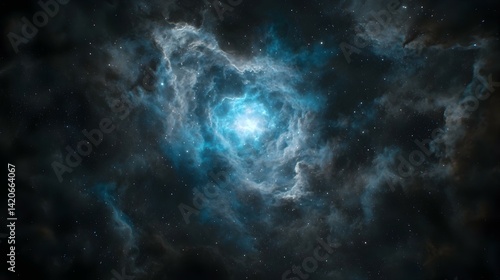 Stunning cosmic nebula with vibrant blue hues and scattered stars. Perfect for backgrounds, astronomy, or space-themed projects.