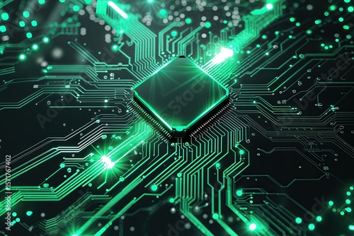 Stunning Digital Circuit Experience with Vibrant Data Pulses in Emerald and Charcoal Colors