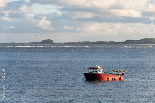 Stunning dramatic landscape image of Lindisfarne, Holy Island in Northumberland England during Winter