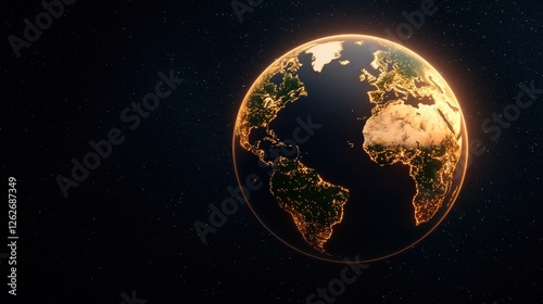 Stunning Earth View from Space with Illuminated Continents and Starry Background