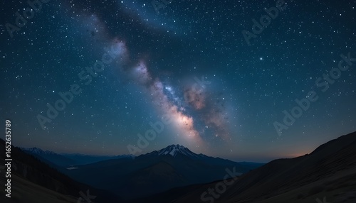 Stunning Milky Way galaxy arcs over snow-capped mountains under a vast starry night sky