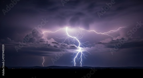 Stunning Night Sky with Dramatic Lightning Bolts.