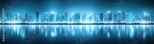Stunning nighttime city skyline reflected in tranquil waters, captivating urban scene