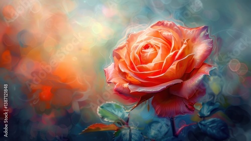 Stunning orange rose in artistic garden setting