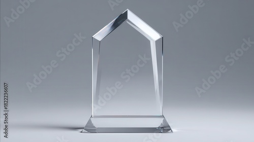 Stunning photo of empty acrylic award design mockup, blank glass trophy mockup. Template for a transparent crystal prize plate.
