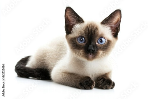 Stunning Siamese cat on pure white background, hyper-detailed and majestic