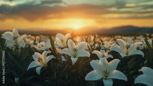 Stunning Sunset Lilies Blossoming in Lush Countryside Field