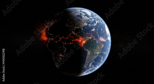 Stunning view of planet Earth from space, showcasing continents and glowing city lights.