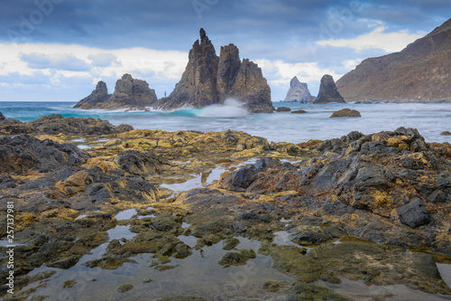 Stunning views of the incredibly beautiful Benijo beach in the north of Tenerife. Canary Islands..Spain