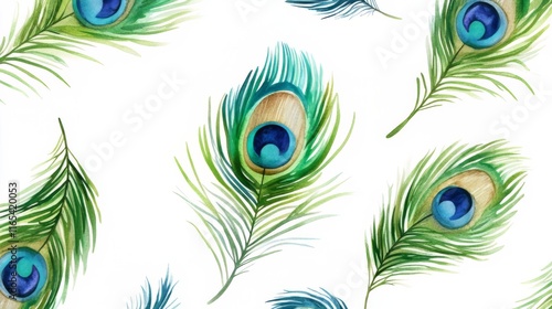 Stunning Watercolor Peacock Feather Pattern Design - Vibrant and Elegant Artistic Print