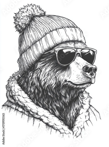 Stylish Bear in Winter Beanie and Sunglasses
