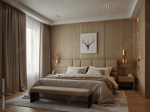 Stylish Bedroom in Calm Beige Colors