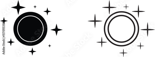 Stylish black and white celestial designs featuring circles and stars for artistic and decorative projects