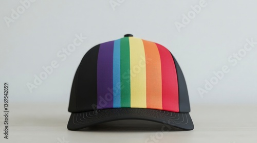 Stylish Black Baseball Cap Featuring a Vibrant Rainbow Stripe Design