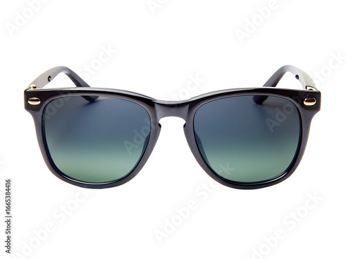 Stylish black sunglasses with gradient lenses, isolated on transparent background