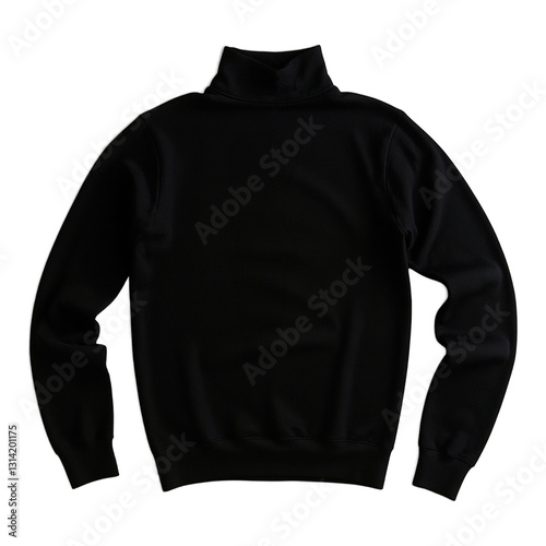 Stylish black turtleneck sweater elegantly folded showcasing its cozy fabric and sleek design on a clean white background